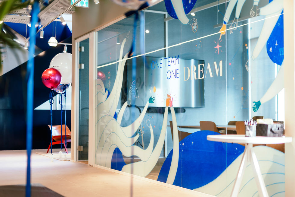 Interactive sections invite team members to handwrite personal aspirations directly onto the artwork, encouraging everyone to dream big and work together—reflecting Dream’s commitment to a creative, united workplace.